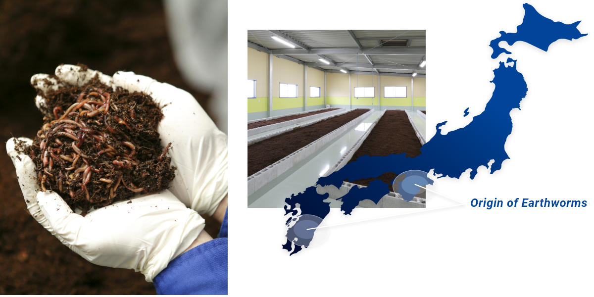 Our clean edible earthworms are mainly raised in Miyazaki and Nara.
