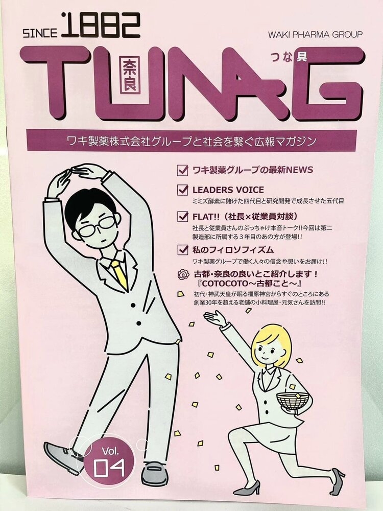 2023年06月23日(金) ワキ製薬の社内報TUNAG4号が完成!配布開始! 社内報の第4号が完成致しました!お取引先様や金融機関様、従業員のご家族などにワキ製薬のことを知っていただくための社内報。今回からは「私のフィロソフィズム」という動画も視聴できるコンテンツを追加! 社員さんたちが大切にするフィロソフィや仕事に対する想いを動画にてご紹介致します。是非とも当社の社員たちの想いを知っていただくことで、商品や会社に対する見方も変わるはずです!しっかりと作りこんだ動画です!是非ともご覧ください!