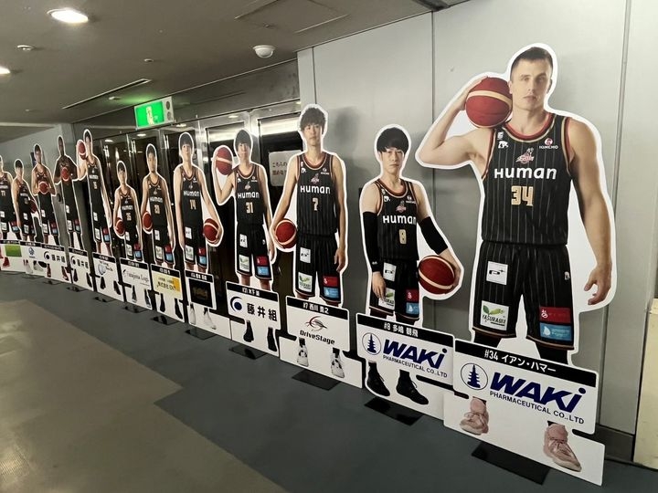 2023年10月07日(土) Bリーグ開幕!! 始まりました、バスケットBリーグ! ワキ製薬がスポンサーとして応援するエベッサ大阪の熱い戦いを是非見て下さい 各会場の入り口におかれているパネルには当社のロゴが掲載されています 多嶋選手とハマー選手のパネルを見つけたら是非ともご覧ください
